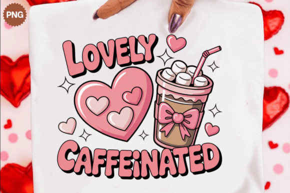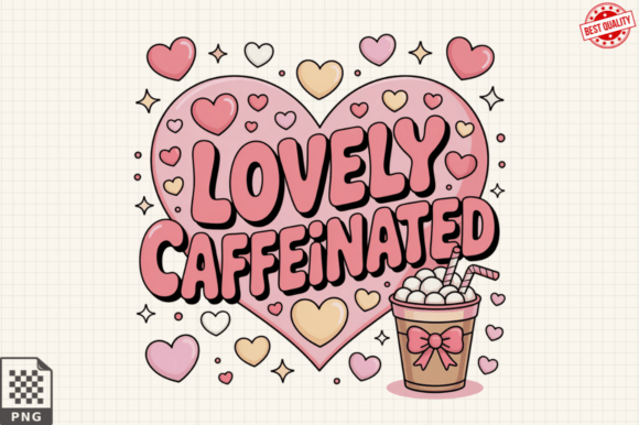 This adorable design features a ‘Lovely Caffeinated’ message surrounded by playful hearts and a cute coffee cup, bringing warmth and cheer to your projects.